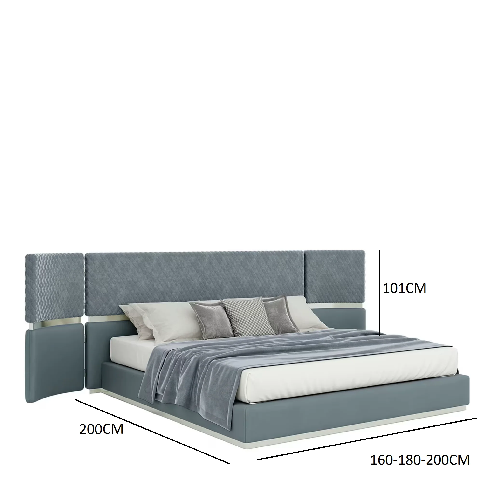 - Dimensions: Height 101 cm × Depth 200 cm × Width 160-180-200 cm