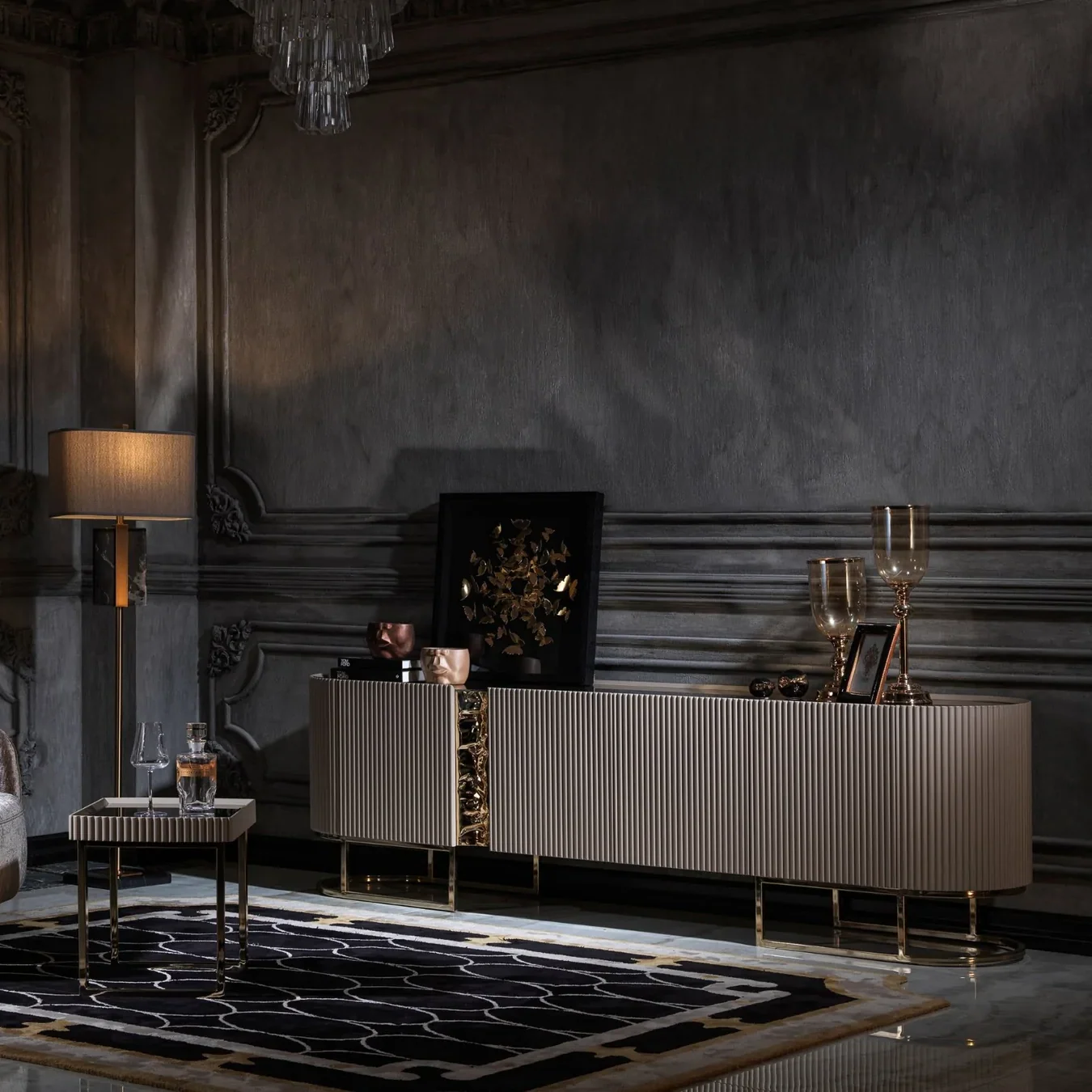 A luxurious TV unit designed to combine elegance and practicality, making it an ideal choice for adding a touch of sophistication to your living room. Made from durable natural wood with electrostatic metal details and elegant marble, it ensures high quality and a refined appearance. Available in beige, cream, or black, the unit adds an attractive contrast to any interior.