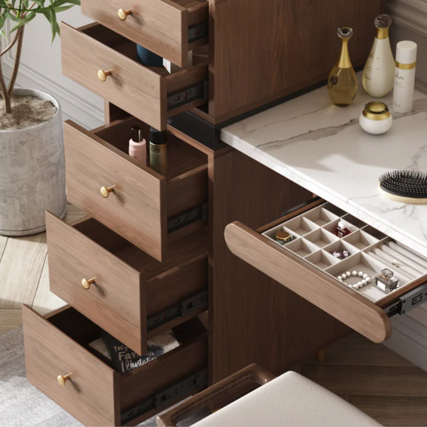 Crafted from high-quality natural wood with a marble alternative surface, this dresser ensures durability and a refined look. The warm brown finish adds sophistication, making it a functional and decorative piece that enhances any interior.