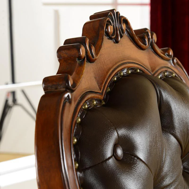 This royal office chair features a luxurious design that adds a touch of elegance and comfort to your workspace. Available in brown or black, it adds a refined and sophisticated look to suit upscale tastes. Made from high-quality leather and a natural wood frame, ensuring long-lasting durability and exceptional comfort. With dimensions of 120 cm width, 69 cm depth, and 61 cm height, this chair is an ideal choice for offices that require both comfort and luxury.Details: