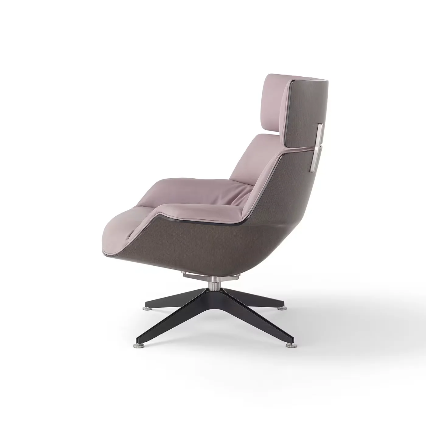 A distinctive contemporary chair that combines elegance and comfort, crafted from coated metal for durability and covered in premium leather in attractive gray and brown hues. With comfortable dimensions of 92 cm in width, 84 cm in depth, and 100 cm in height, it is perfect for relaxation and adding a modern touch to any living room or office. Its unique design adds modern charm and simple elegance to any interior space.